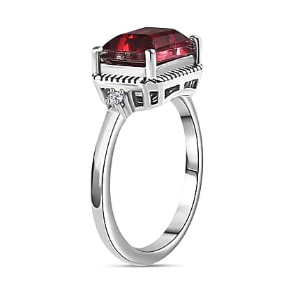Feel the rush of a diva sashaying on the red carpet with this Blazing Red Triplet Quartz and Natural Zircon Ring. The eye-catching red hue of the main stone finds company in two radiant zircons on the shoulders. The ring has the fabulous sheen of Rhodium Overlay, which also protects the Sterling Silver base from accidental damage.