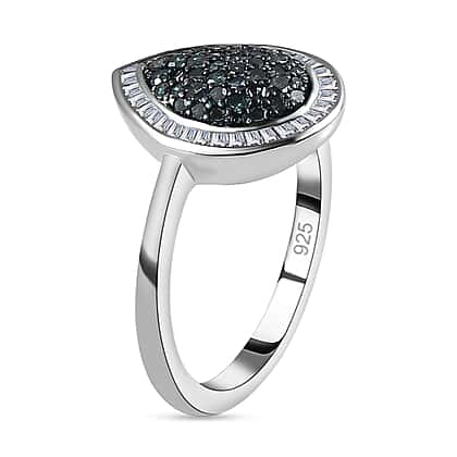 Blue and White Diamond Ring in Platinum Overlay Sterling Silver 0.51 Ct