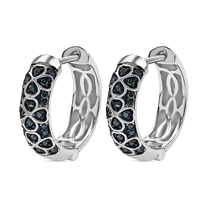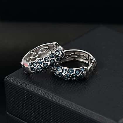 Blue Diamond Cluster with Hoop Earring in Rhodium Overlay Sterling Silver 0.25 Ct.