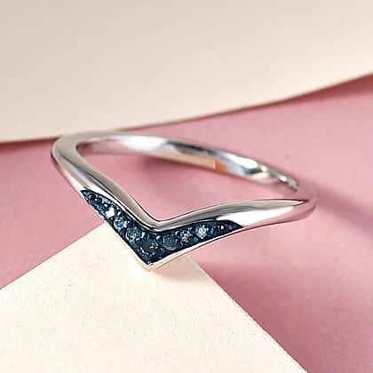 This blue diamond wishbone ring is a statement piece draped in the understated elegance of platinum overlay sterling silver. The ring sports seven round blue diamonds that leave you looking into the great depths of the churning seas whose colour they carry in their single-cut facades. Wishbone rings are long associated with favourable fortunes in new undertakings. Platinum-plated silver carries a great shine and long life.