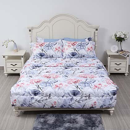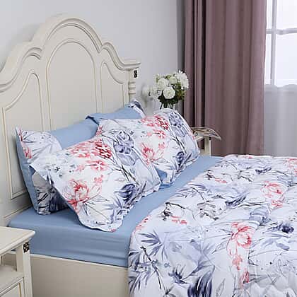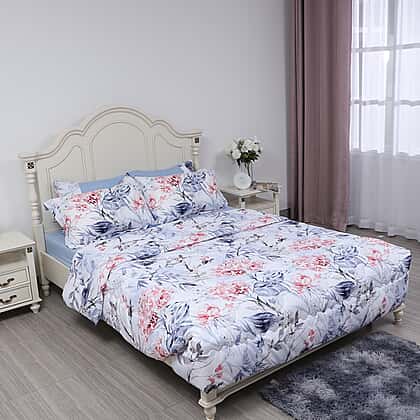 6 Piece Set - Floral Pattern Comforter Fitted Sheet 2 Pillow Case and 2 Envelope Pillow Case - White & Dusty Pink
