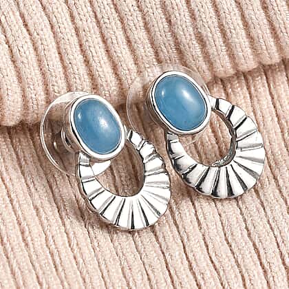These soothing light blue jade earrings add a touch of tranquillity to any look. The stainless steel setting ensures durability and comfort. If you are looking for a serene makeover with a subtle hint of glamour, these earrings are tailor made for you. The jade stones in a fine blend of sophistication and minimalism, are soothing to eyes.