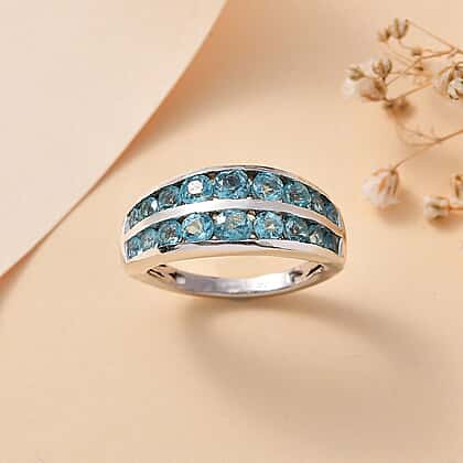 Blue Lagoon Apatite Ring in Rhodium Overlay Sterling Silver 1.916 Ct.