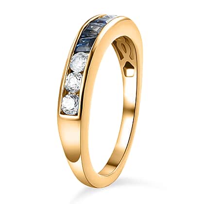 Blue Sapphire and Natural Cambodian Zircon Half Eternity Ring in 14K Yellow Gold Overlay Sterling Silver