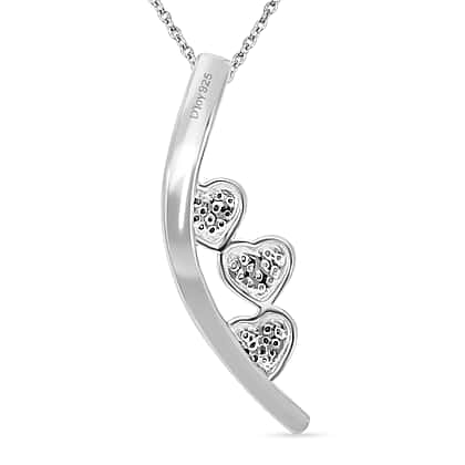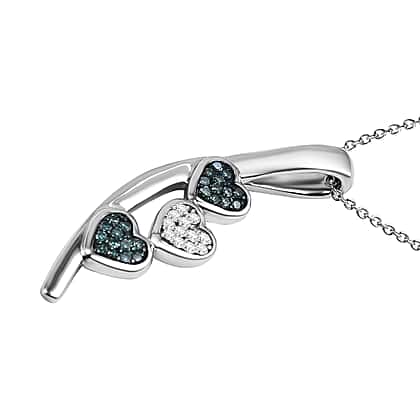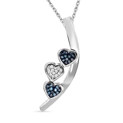 Blue & White Diamond Heart Pendant with Chain (Size 20) in Platinum Overlay Sterling Silver 0.16 Ct