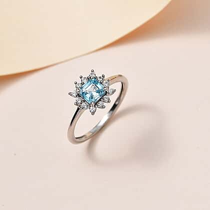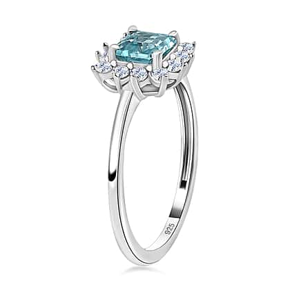 Blue & White Zircon Ring in Platinum Overlay Sterling Silver 1.25 Ct.