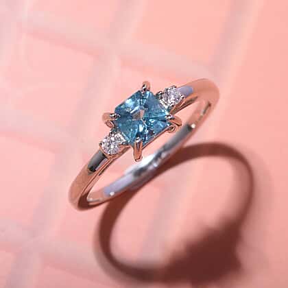 Blue Zircon, Moissanite Ring in Rhodium Sterling Silver 1.35 ct.