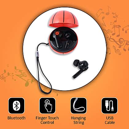 Bluetooth Wireless Earbuds with USB Port and Basketball Shaped Charging Box - Red and Black