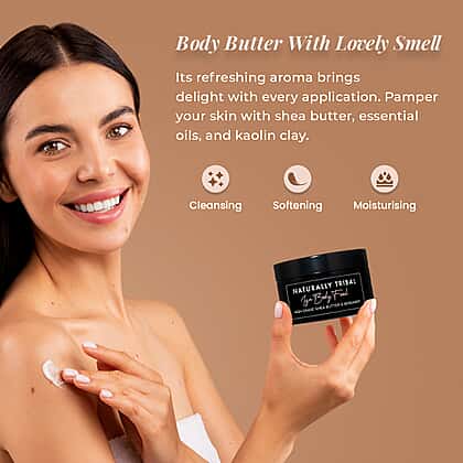 - BODY BUTTER WITH A LOVELY SMELL - You will be delighted every time you apply this body cream. Its wonderful smell has a refreshing impact on the wearer. The best part, it comes with SPF UV protection. Shea butter, pure essential oils & kaolin clay will pamper you with every application. Other ingredients include Apricot, Bergamot, Clary Sage, Geranium, Kaolin Clay, Shea Butter, and Ylang-Ylang.