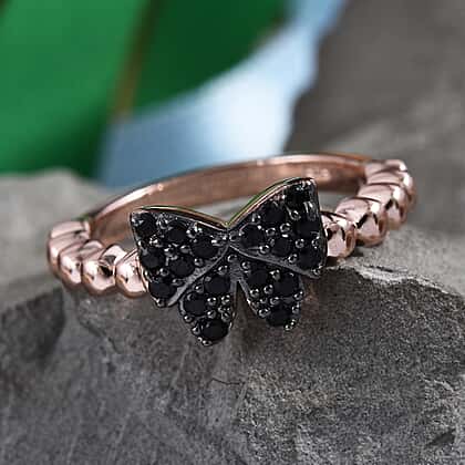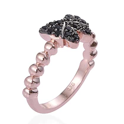 0.50 Ct Thai Black Spinel Butterfly Cluster Ring in Rose Gold Plated Sterling Silver