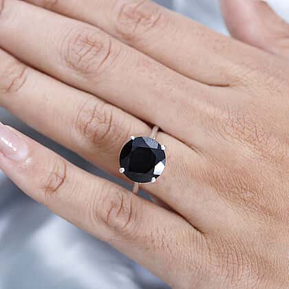 Boi Ploi Black Spinel Solitaire Ring in Sterling Silver 7.48 Ct.