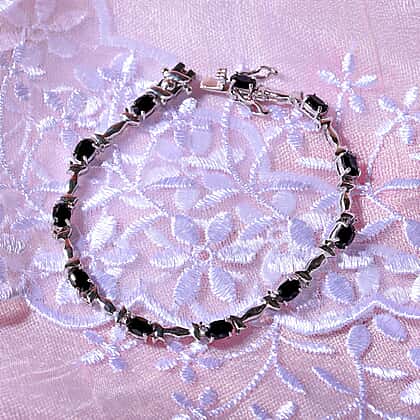 Boi Ploi Black Spinel Tennis Bracelet (Size-7.5) in Rhodium Overlay Sterling Silver 6.61 Ct, Silver Wt 9.00 GM