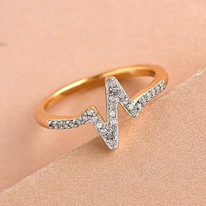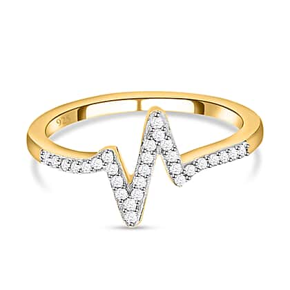 A design that can make your heart skip a beat! This diamond heartbeat ring crafted in vermeil yellow gold overlay sterling silver boasts a unique design to create the perfect gift of love. Made in 2.070 grams of sterling silver with yellow gold vermeil, the elegant ring is studded with 29 diamonds of 0.145 carats. Leave her starry-eyed with this sparkling design.
