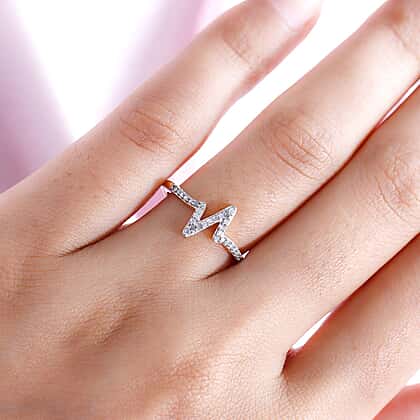Bolt of Zeus Diamond Heartbeat Ring in Platinum Overlay Sterling Silver