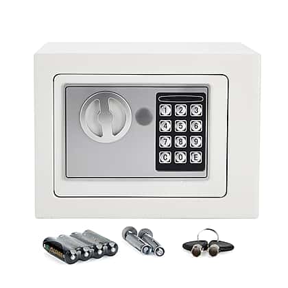 Keeping your essentials safe has never been easier with this beige carbon steel safe box, designed for both style and reliability. Its 17x23x17cm size makes it compact yet spacious enough to store valuables, while the 2.3kg build offers dependable strength. The warm beige finish adds a softer touch, making it ideal for blending into home décor without drawing attention. Featuring a digital keypad, the safe provides quick access, while two emergency keys ensure peace of mind. Supplied with expansion screws, it can be fixed securely to the wall for enhanced protection of cash, jewellery, and important papers.