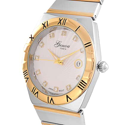 GENOA TIME V2 Japanese Movt. Crystal Studded Watch with Stainless Steel Chain Strap