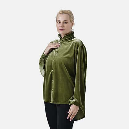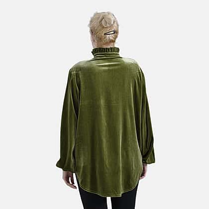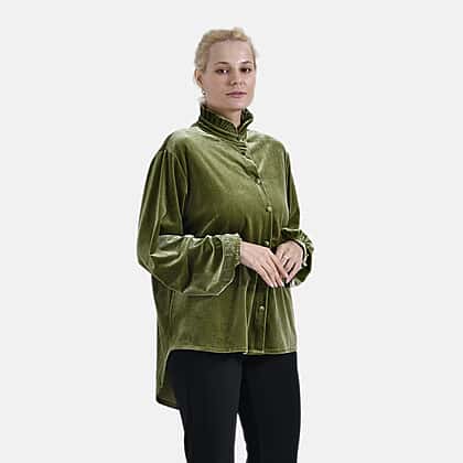 Elevate your wardrobe with the La Marey velvet blouse in a striking green hue, designed to blend sophistication with comfort. This blouse, crafted from a luxurious velvet blend of 95% polyester and 5% elastane, offers a soft, smooth touch and a flattering fit. The piece features a refined classic collar, long sleeves with elasticated cuffs, and a button-down front for effortless elegance. The curved hem adds a modern finish, making it perfect for pairing with trousers or skirts. Whether for work, casual outings, or special occasions, this green blouse is a versatile and stylish addition to your collection.