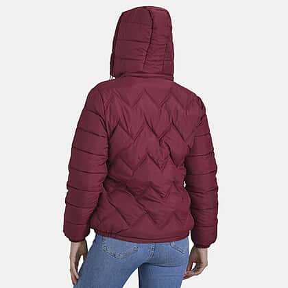 The La Marey short lightning-patterned quilted jacket with hood is a stylish and functional choice for cooler days. Made from 100% polyester, this jacket features a zigzag quilted design for a modern touch. The padded construction ensures warmth, while the adjustable drawstring hood offers customised coverage. With two practical side pockets, you can keep your hands warm or store small essentials. Ideal for everyday wear, it pairs effortlessly with jeans, skirts, or dresses, making it versatile for shopping, work, travel, or outdoor activities. The solid colour enhances its charm, offering both style and comfort for any occasion.