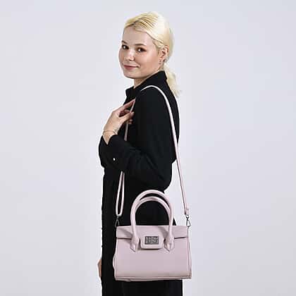 Stylish Rectangular Crossbody Bag with Top Handle - Light Mauve