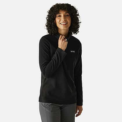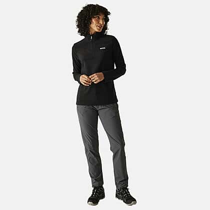 Slip into the Regatta women’s sweethart lightweight half-zip fleece in black, a sleek and practical choice for everyday layering. This fleece is made from 170gsm Symmetry fabric, giving you a cosy brushed inner and a smart anti-pill outer that resists bobbling. The half-zip neck allows quick adjustment for changing conditions, while the lightweight feel makes it easy to wear solo or layered under a jacket. With 20% recycled polyester included in its design, it’s a smart pick for both you and the planet. Quick-dry and low maintenance, it’s built to keep pace with busy days outdoors.