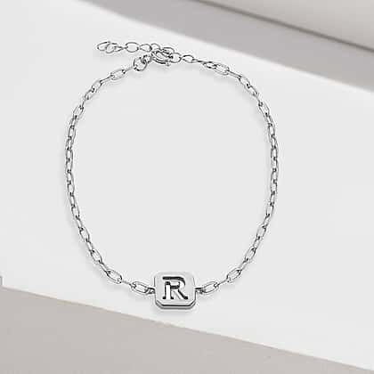 Sterling Silver 8mm x 9mm Initial R Initial Bracelet 6.7 Inch to 8 Inch