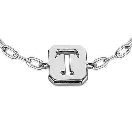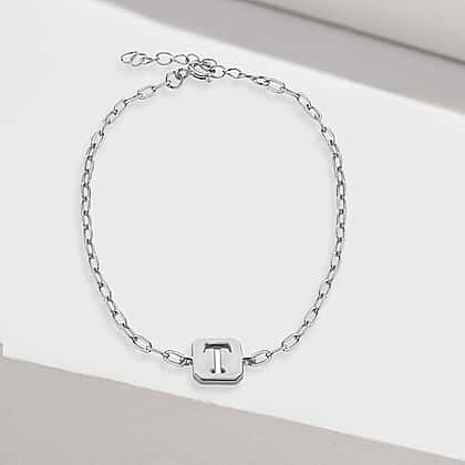 Sterling Silver 8mm x 9mm Initial T Initial Bracelet 6.7 Inch to 8 Inch