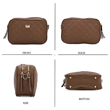 Elevate your wardrobe with this quilted crossbody bag in brown, a stylish companion that complements any season. Expertly made from premium leatherette and lined with soft polyester, it balances functionality with sophistication. The quilted pattern gives it a timeless texture, while the patterned strap introduces a contemporary accent. Inside, a zipped pocket and a slip compartment ensure your daily items stay neatly organised. Compact and easy to carry, this versatile bag adds understated charm to both casual and smart-casual outfits.