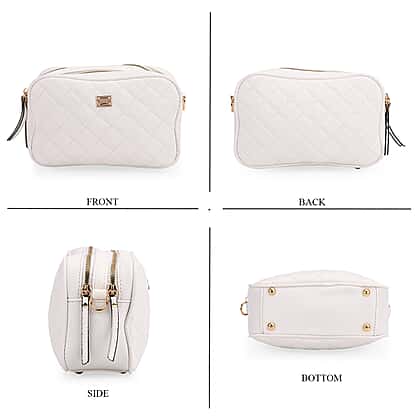 Bring subtle elegance to your accessories with this quilted crossbody bag in white, a perfect blend of style and practicality. Made from durable leatherette and lined with soft polyester, it’s crafted for everyday ease. The quilted stitching adds a touch of sophistication, while the patterned strap enhances its contemporary charm. Inside, there’s a zipped pocket and a slip compartment to keep your belongings organised and secure. Whether for a lunch date or a day of errands, this bag is a refined choice for the modern woman.
