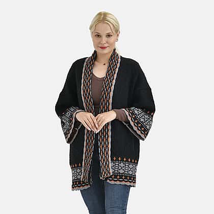 Tamsy Coloured Woven Cardigan (One Size) - Black