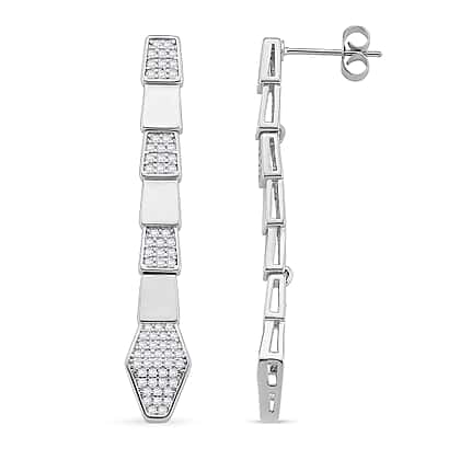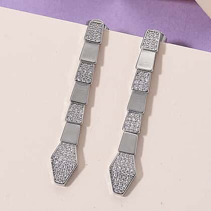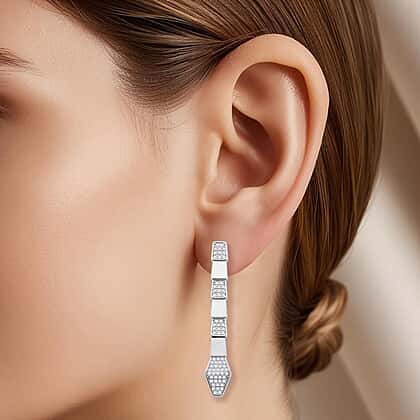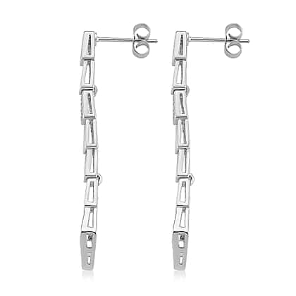 Delicately glamorous and graceful, these earrings use a stepped, link-style structure to create length. Each section is lightly detailed, leading down to a tapered end with white cubic zirconia for a soft highlight. The white gold-plated on pure white brass offers durability and a lasting shine. The glossy finish keeps the look clean and easy to style, reflecting light with a subtle shine. Finished with a push post closure clasp, these earrings offer comfort and security. Designed to sit comfortably while adding lines, they work well as the lifted finishing piece to everyday or evening looks.
