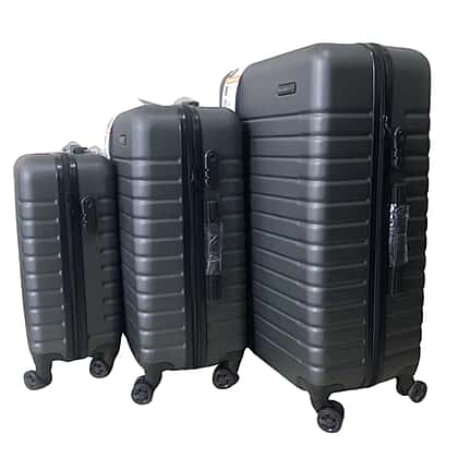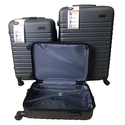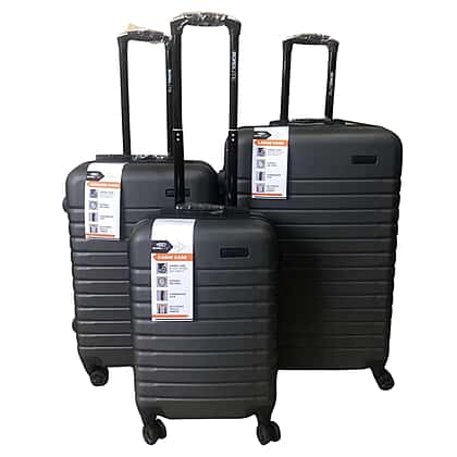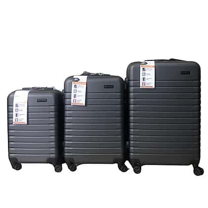 Bordlite Set of 3 - Durable Hard Shell 4 Wheel Suitcases with Soft Grip Handles- Dark Grey
