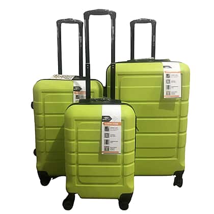 Bordlite Set of 3 - Durable Hard Shell 4 Wheel Suitcases with Soft Grip Handles- Green