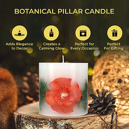 Botanical Pillar Candles with floral design (440 Gms) - Multi Color