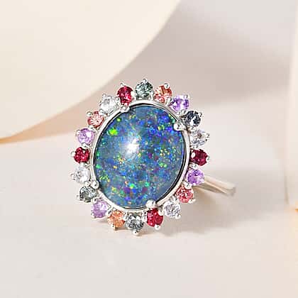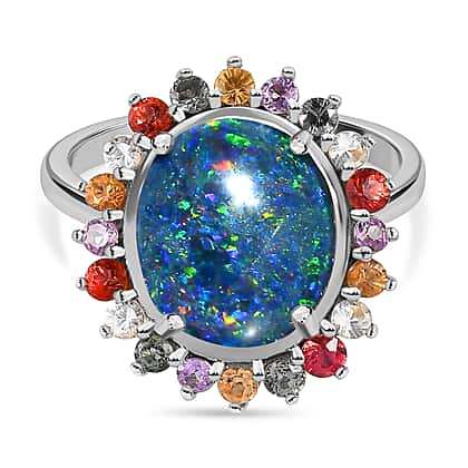 Boulder Opal and Multi Sapphire Ring in Platinum Overlay Sterling Silver 3.82 Ct.