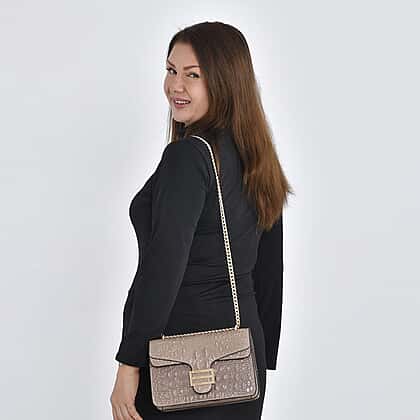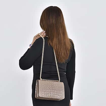 Step out in style with this 100% genuine leather crossbody bag, complete with a chic chain strap for added flair. The sleek and stylish design is perfect for any occasion, whether you're running errands or out on the town. The soft, supple leather feels luxurious to the touch, while the spacious interior provides ample room for all your essentials. The adjustable chain strap allows you to wear it as a crossbody or shoulder bag, making it a versatile and practical choice. With its impeccable craftsmanship and attention to detail, this bag is the perfect accessory for anyone who wants to elevate their style and stay organized on the go.