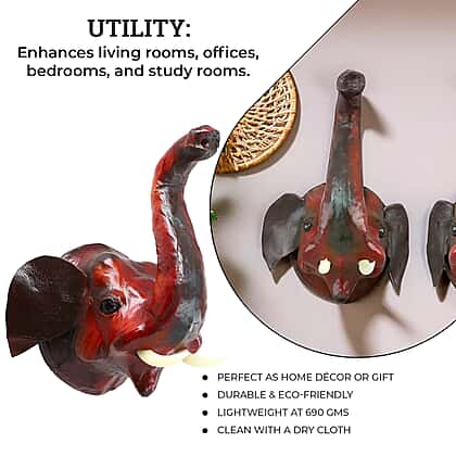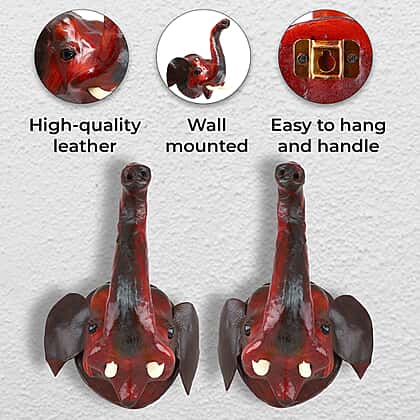 Boutique Collection - Set of 2 Genuine Leather Home Decor Elephant Wall Hangings