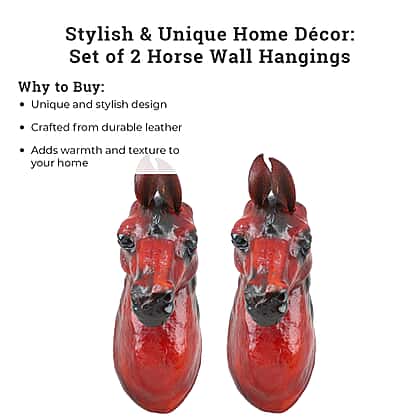 Enhance your home with the Boutique Collection - set of 2 genuine leather horse wall hangings. These high-quality leather wall-mounted pieces add warmth and texture to your interiors, creating a unique and stylish atmosphere. The horse design symbolises freedom and grace, making them perfect for any living room or office. The texture details add a sophisticated touch, ensuring durability and a polished look. Easy to hang and handle, these wall hangings are a stunning addition to your decor, bringing a touch of nature and elegance to your space.