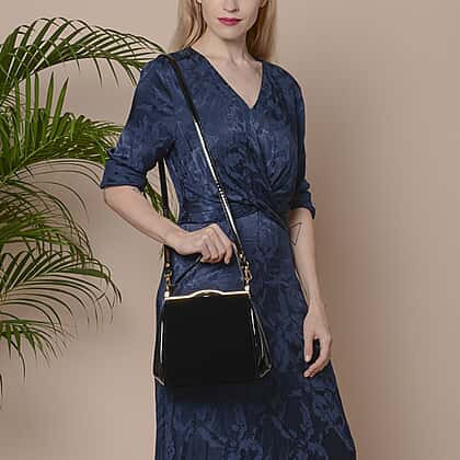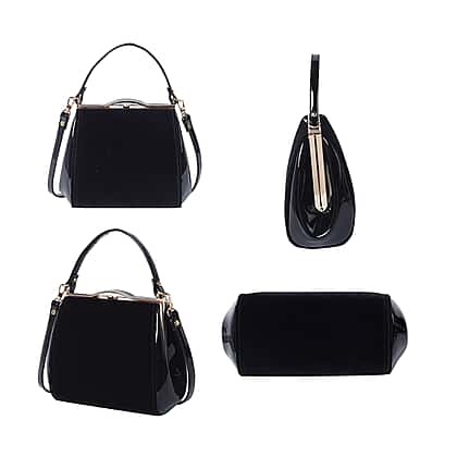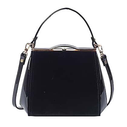 BOUTIQUE COLLECTION Black Satchel Bag with Detachable Shoulder Strap and Top Handle (Size 24x11x19 Cm)