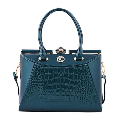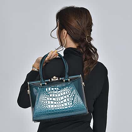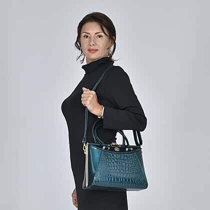 BOUTIQUE COLLECTION Croc Pattern Satchel Bag with Detachable Strap - Green