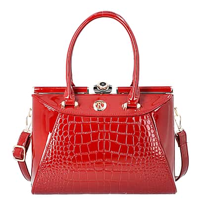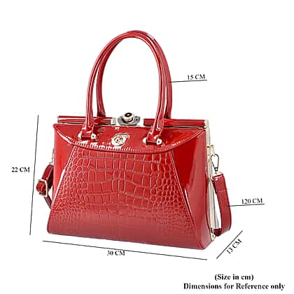 BOUTIQUE COLLECTION Croc Pattern Satchel Bag with Detachable and Adjustable Shoulder Strap (Size 30x13x22 Cm) - Wine Red