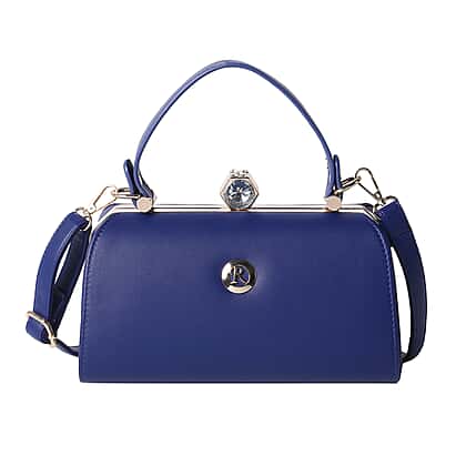 BOUTIQUE COLLECTION Navy Colour Clutch Bag with Detachable and Adjustable Shoulder Strap with Crystal Studded Top Knob (Size 26x13x14 Cm)
