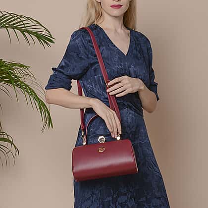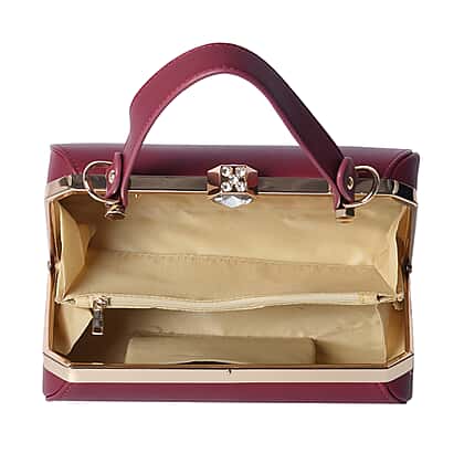 BOUTIQUE COLLECTION Wine Red Colour Clutch Bag with Detachable and Adjustable Shoulder Strap with Crystal Studded Top Knob (Size 26x13x14 Cm)