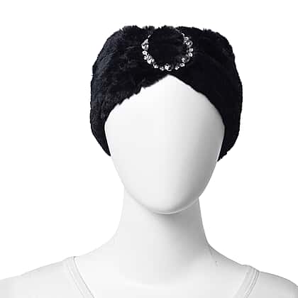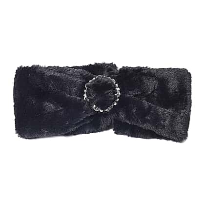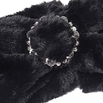 Bowknot Design Faux Fur Headband Size 10x55 Cm in Black Colour