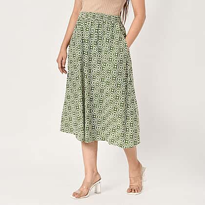 The Tamsy printed skirt offers a blend of comfort and effortless style, perfect for any casual or semi-formal occasion. Crafted from 100% viscose, this lightweight and breathable skirt drapes elegantly with its soft and flowy fabric. The elastic waistband ensures a secure fit while maintaining ease of movement. Its vibrant print adds a touch of personality to any outfit, making it a versatile piece for your wardrobe. Whether you're dressing it up or down, this skirt delivers both comfort and style.