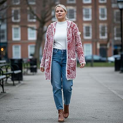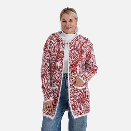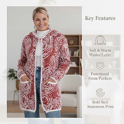 Add a pop of colour to chilly days with this Tamsy Winter Women’s Coatigan Hoodie with Pockets in red and white swirl patterns. Crafted from soft 100% polyester, it’s designed to keep you warm while feeling lightweight and breathable. The eye-catching swirl print gives a modern twist to a winter staple, while the generous fit suits sizes 8–20. With two handy pockets and a comfy hood, it’s perfect for casual outings or relaxed evenings at home.