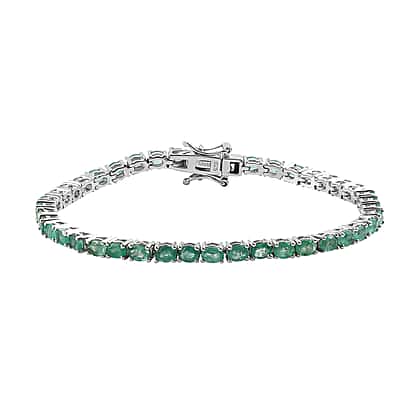 Boyaca Colombian Emerald Bracelet (Size - 8) in Platinum Overlay Sterling Silver 7.76 Ct, Silver Wt. 10.50 Gms