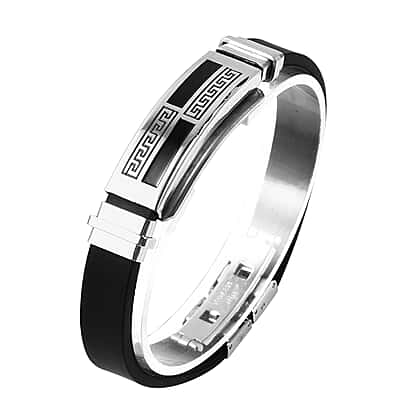 Mens Bracelet in Stainless Steel Greek Key 7.5 Inch