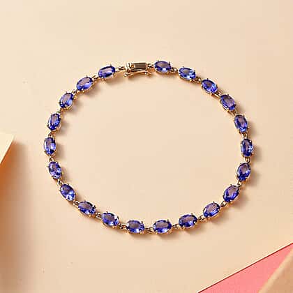 14K Yellow Gold AAA Tanzanite Bracelet (Size - 7.5) 9.64 Cts