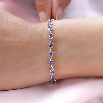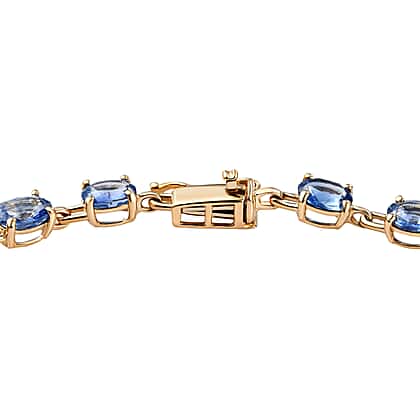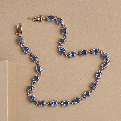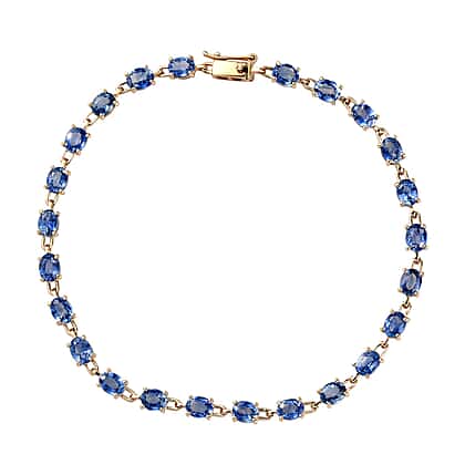 14K Yellow Gold Blue Ceylon Sapphire Bracelet (Size - 7.5) 7.44 Ct.