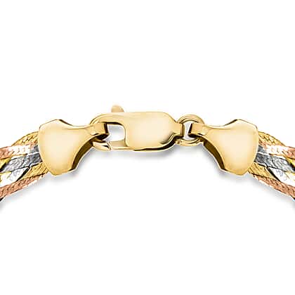 9K Three Colour Gold 6 Plait Textured Herringbone Bracelet 7 Inch